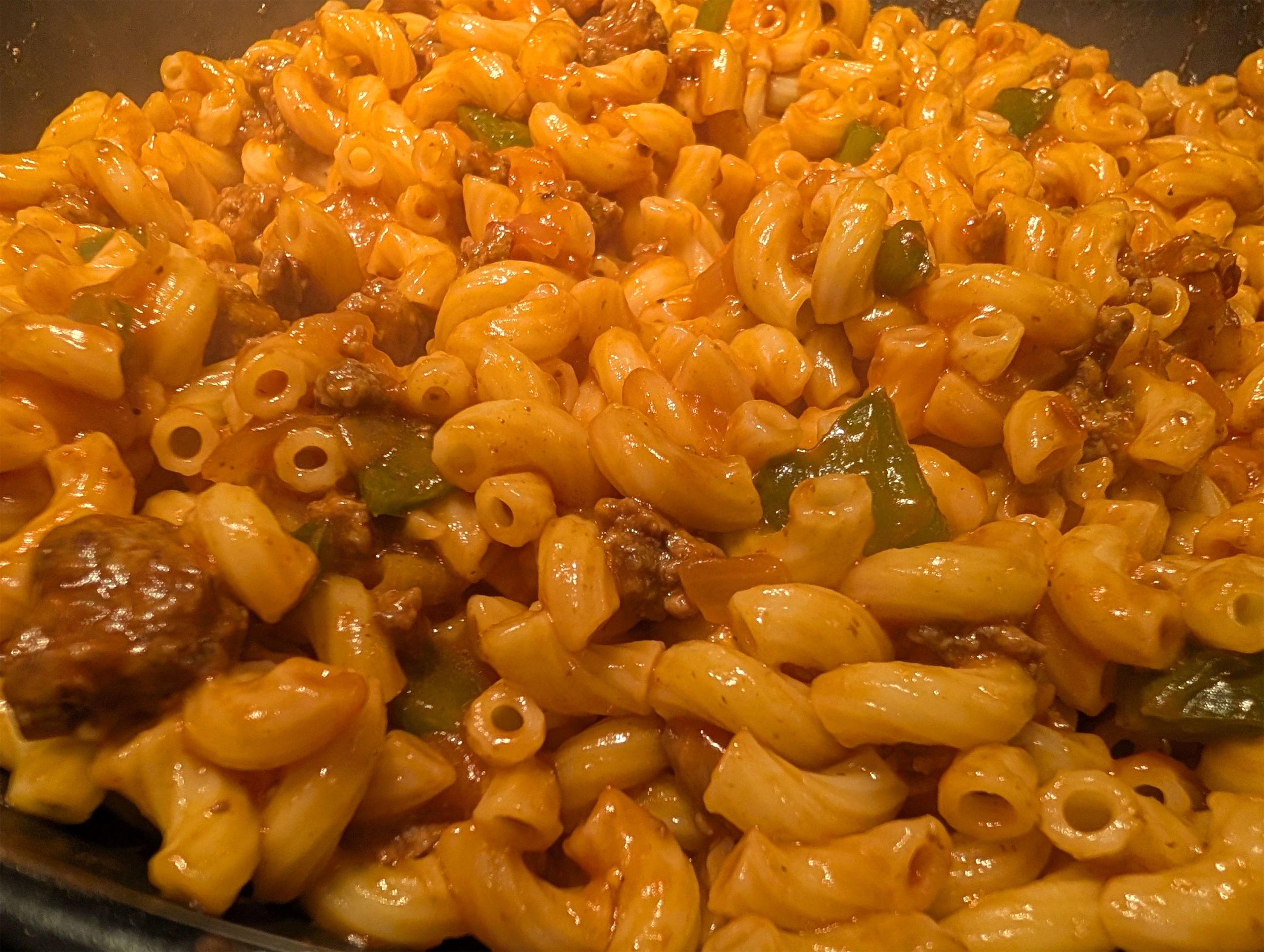 - Add macaroni to meat/sauce mixture.