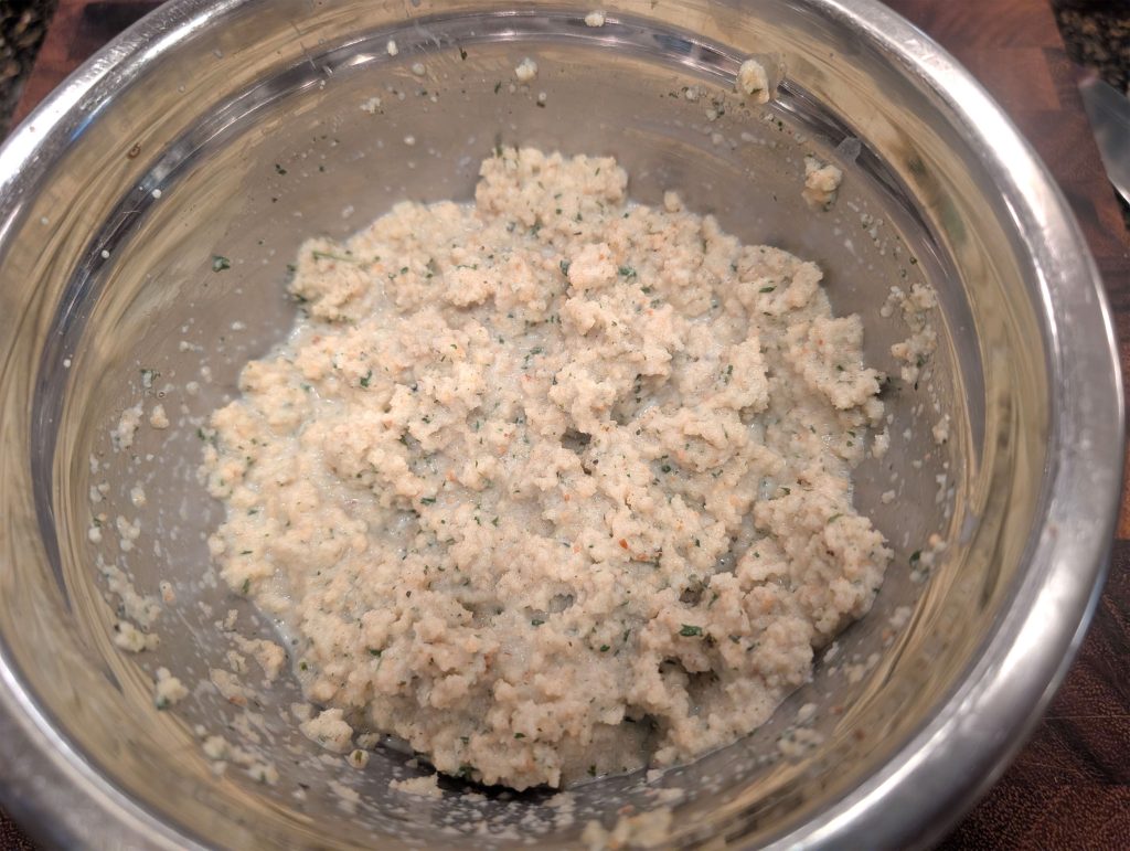 I added all the ingredients I usually do and mixed well. I will say it is harder to incorporate the bread crumbs soaked in milk than the dry bread crumbs.