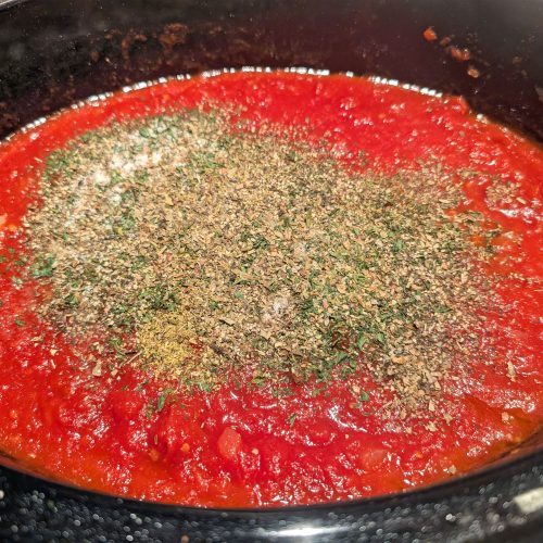 You can make your own recipe for red sauce, jarred sauce or my version. Everyone has their preference for sauce. Some like it cooked all day, some like it cooked for 30 minutes. I happen to be the latter. If I was just making sauce for pasta, I would cook for 30 minutes. For making meatballs it would cook for about an hour. I cook the least amount of time possible. I don’t like acidic tomato sauce.